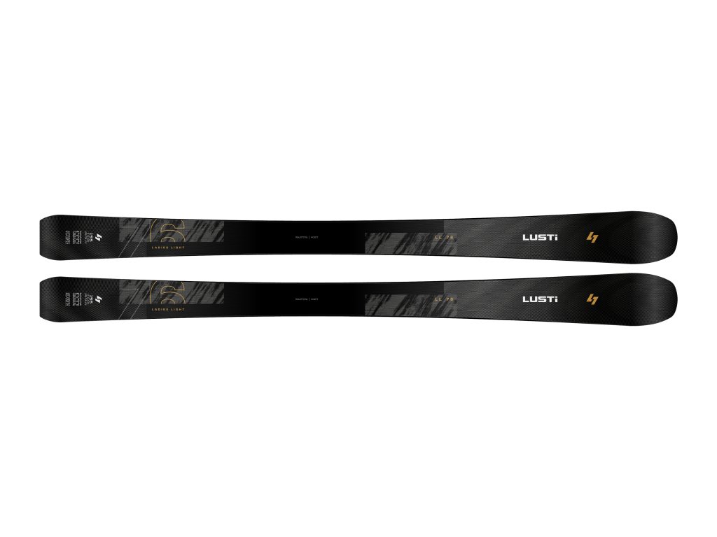 Sandwichové provedení, polyamidová vrchní fólie, 2x biaxiální a 1x triaxiální prepregová nosná vrstva, výztuha, dřevěné jádro, bočnice ABS, ocelové hrany, sintrovaná (závodní) skluznice.