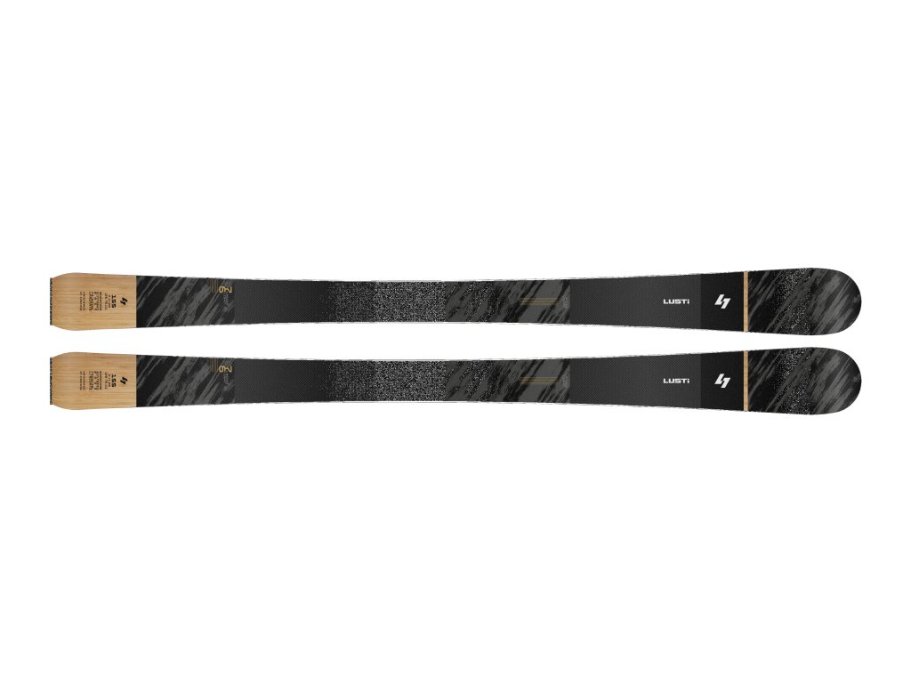Sandwichové provedení, polyamidová vrchní fólie, 2x biaxiální a 1x triaxiální prepregová nosná vrstva, výztuha, dřevěné jádro, bočnice ABS, ocelové hrany, sintrovaná (závodní) skluznice.